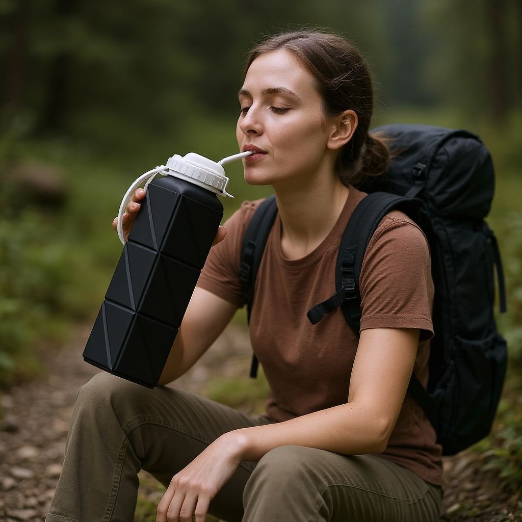 Collapsible Water Bottle with Straw – 20.6oz Foldable Leakproof Silicone